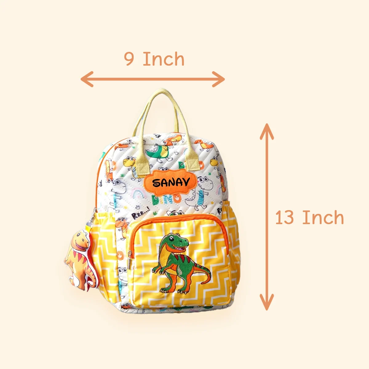 A premium personalised kids backpack designed with your child’s name patch, embroidered character detail, and detachable 3D toy keychain. Made from water-resistant nylon cotton, this lightweight box-style backpack is perfect for school, travel, and birthday gifting.