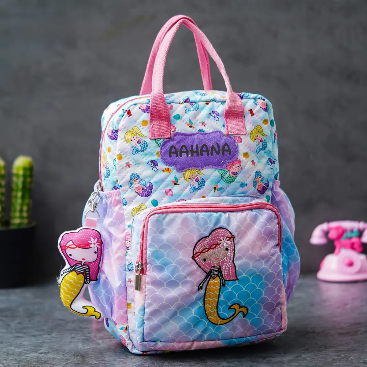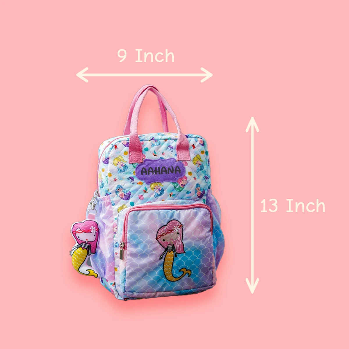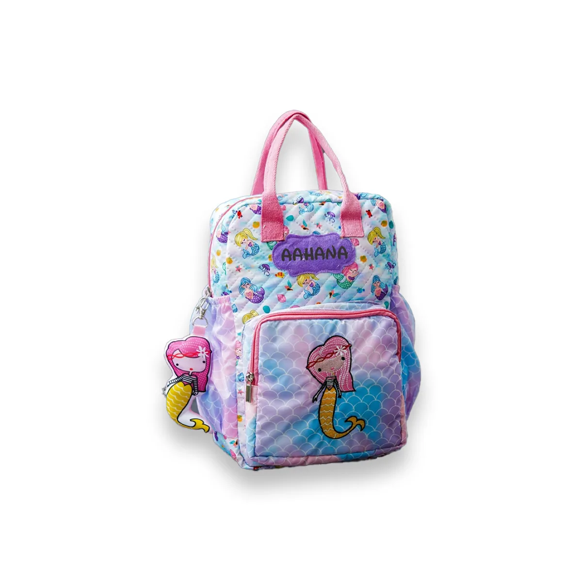 A premium personalised kids backpack designed with your child’s name patch, embroidered character detail, and detachable 3D toy keychain. Made from water-resistant nylon cotton, this lightweight box-style backpack is perfect for school, travel, and birthday gifting.