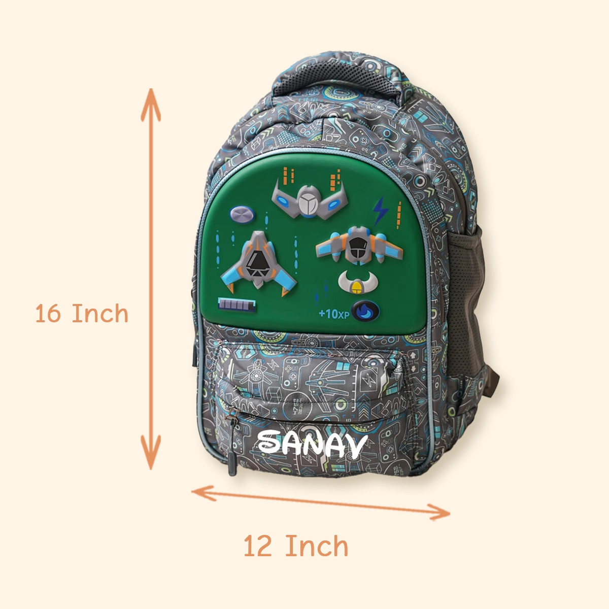The 16-inch size provides comfortable usage, while 3 zip compartments help keep belongings organised. Ideal for daily school routines, this backpack adds a playful theme along with a personalised touch.