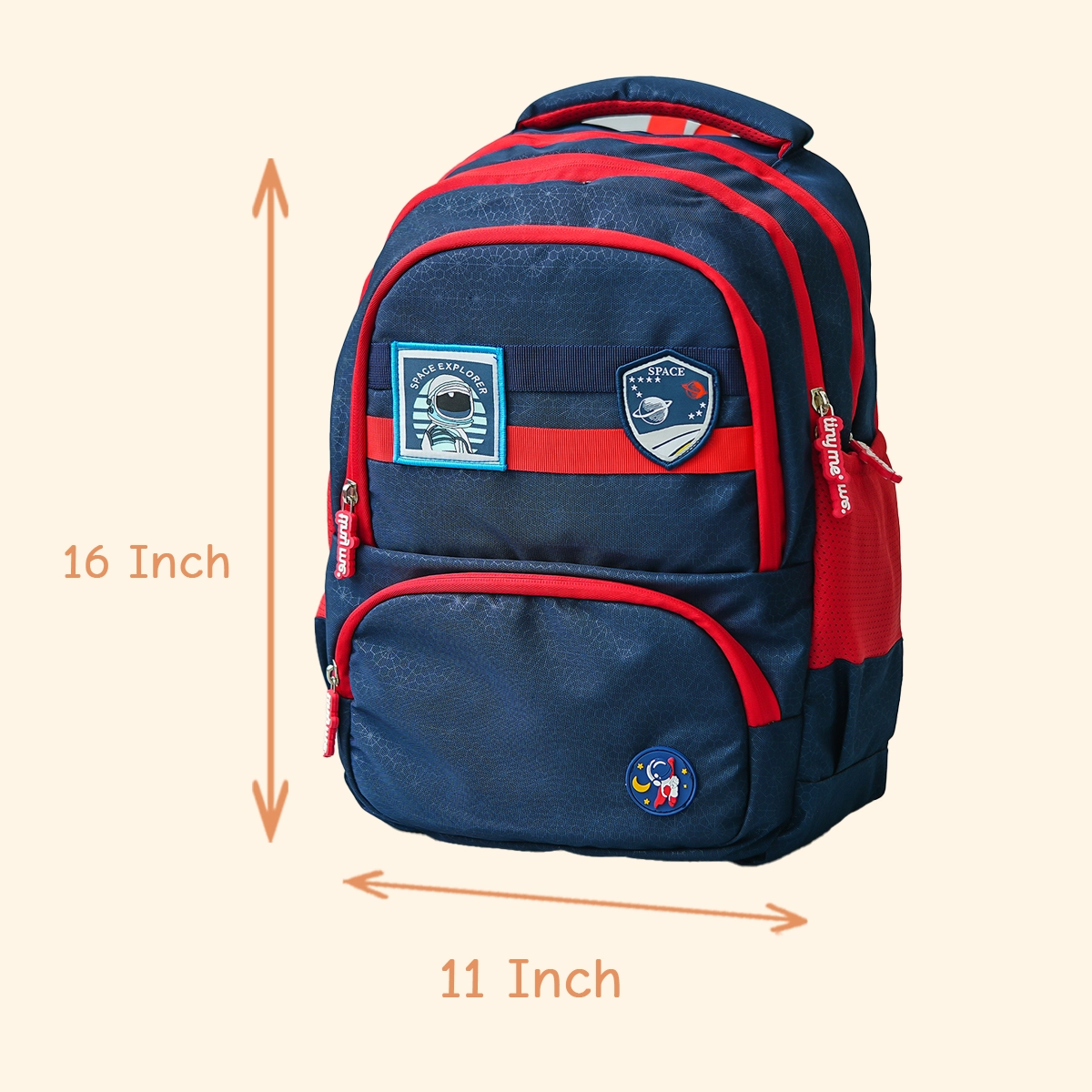 With its 16-inch size, 4 zip compartments, and 2 side pockets, the bag provides ample space for books, stationery, and essentials, ensuring everything stays organised throughout the day. The personalised detail adds a unique and thoughtful touch.
