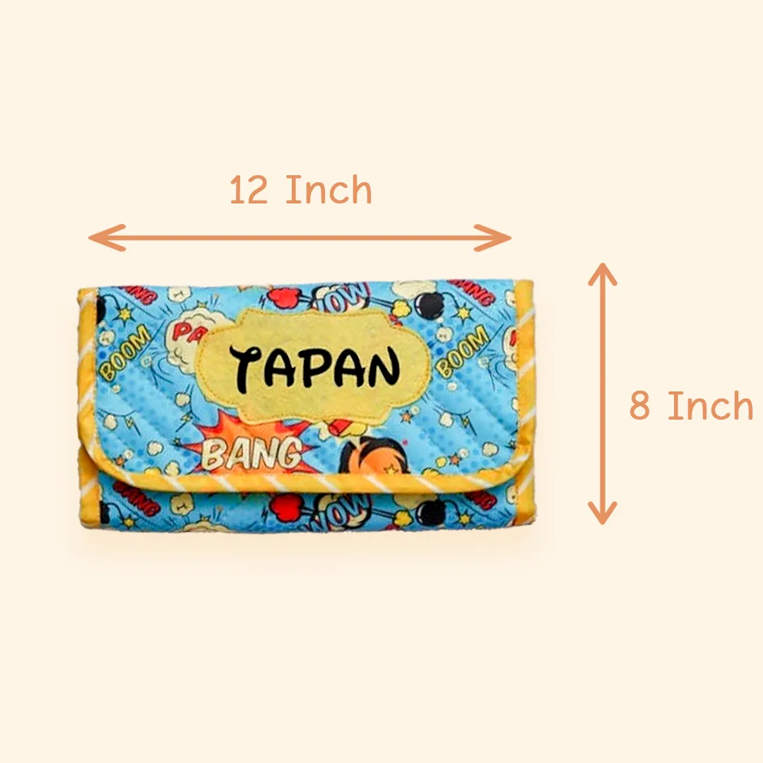 A compact and smartly designed personalised 3-fold organiser featuring 4 compartments, including a detachable transparent pouch with velcro attachment. Ideal as a stationery pouch, mini travel kit, or budget-friendly birthday return gift.